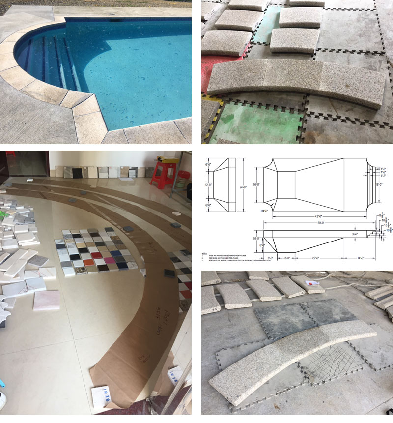 Mr. Richard emailed me in August, 2016 and told me that he need coping for a Hampton style pool 24 feet X 50 ft and 500 sq meters of non slip stone for the pool and deck areas 610 x 610 20mm, then i sent pictures of popular granite material available and delivered the Chinese best rusty granite G682 samples to his office, finally, we confirmed the samples and drawings, to start the order and productions as requested, ship the full containers one month later.... everything looks so good after installtion... and there will need stone for the landscape project... more projects will coming soon!